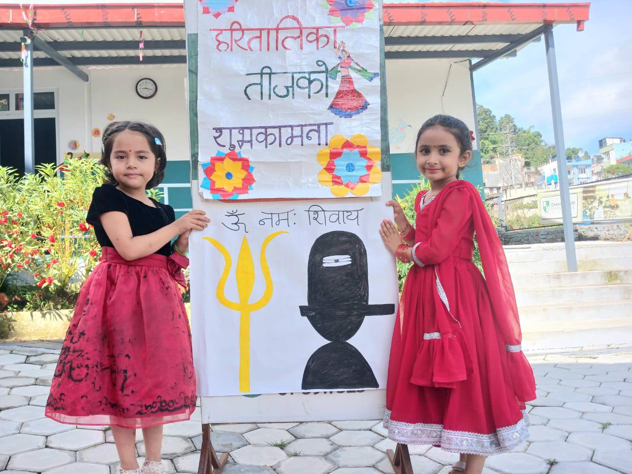 Chandragiri Shikshalaya joyfully celebrated Teej on 10th Bhadra 2082 with great excitement and cultural spirit. The school organized a special program where students and teachers came together to celebrate this beautiful festival. On this occasion, students were encouraged to wear red-colored dresses, which is a traditional color of Teej. The school environment looked bright and festive as children arrived wearing beautiful red clothes and traditional outfits.
