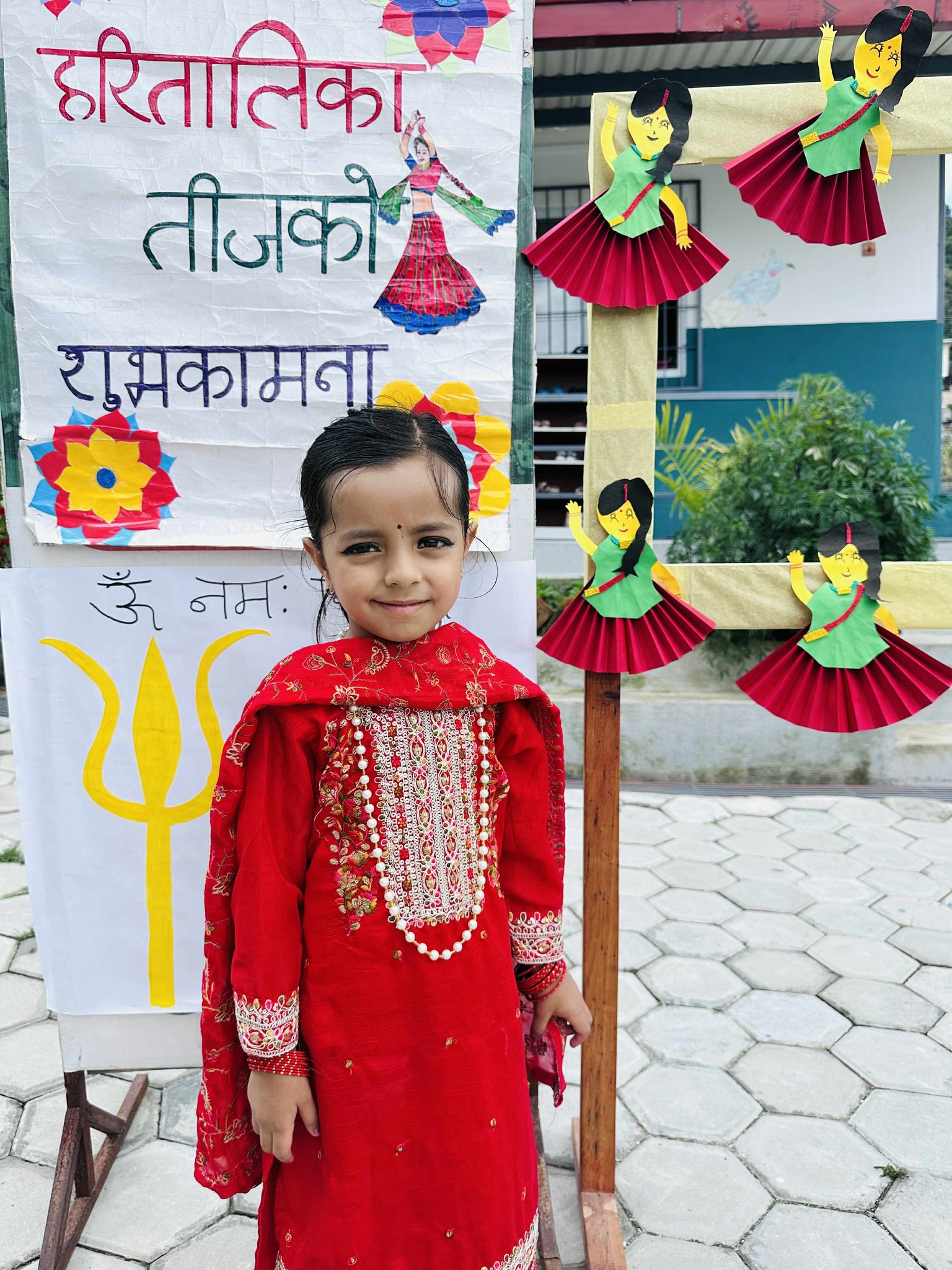 The celebration began with a short introduction about the importance and history of Teej. Teachers explained to the students that Teej is an important Hindu festival celebrated mainly by women, praying for the well-being and long life of their families. It is also a festival that represents devotion, culture, and happiness.
